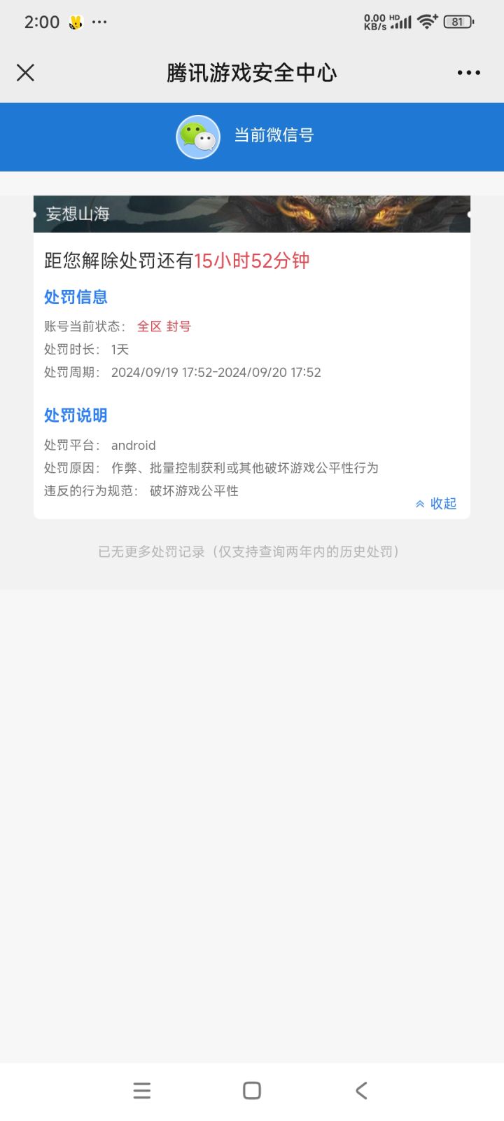 我今天玩妄想山海,仅仅因为由电脑切换手机玩,就被无故封号一天,无理由封号,仅仅给了一个网络原因,并且在刚才我查询原因,被无故被妄想山海人员扣上作弊,批量控制获利,等破坏游戏公平性的虚假的理由,他们可以审查我游戏中并没有他们所说的,任何捏造事实的原因,来封我的号,去掩盖他们自己的错误,而他们可以无缘由的等我们玩家的号,并扣上虚假事实的理由,随意欺负玩家。#妄想山海随意封号 #妄想山海#妄想山海无故捏