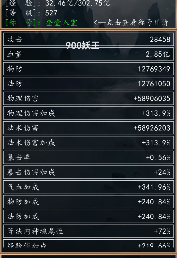 各位,我已经攻克了800-900妖王,现在发800-900妖王的最低属性图,这边发出来给兄弟们参考一下#妖王
