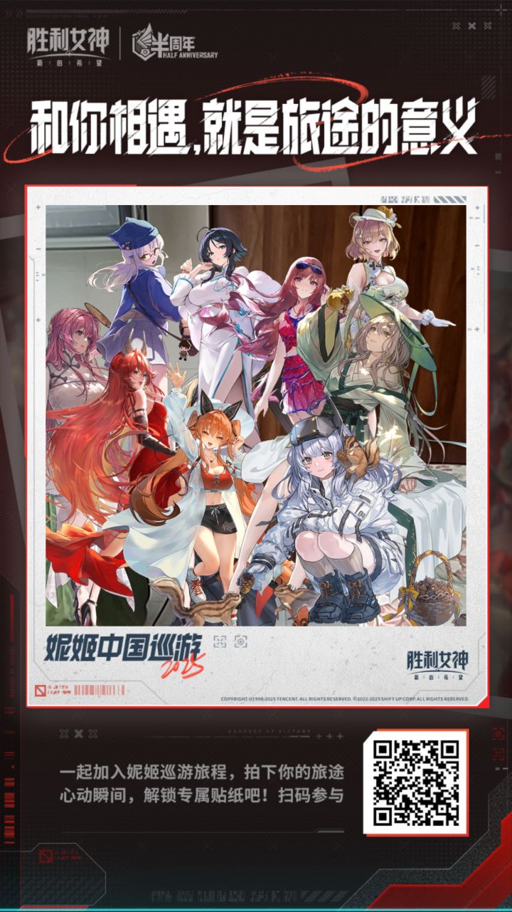 打开【妮姬中国巡游】活动页面,体验刚刚上线的AR拍照功能,拍摄妮姬们出现在生活场景里的照片!即有机会获得精美周边,快来参与吧!活动页面:https://nikke.qq.com/act/voyage/✦活动时间✦征集时间:2025年11月12日~2025年12月10日开奖时间:2025年12月17日 ✦征集主题✦【妮姬中国巡游】AR拍照作品妮姬们巡游的脚步还未停歇。而现在,她们可