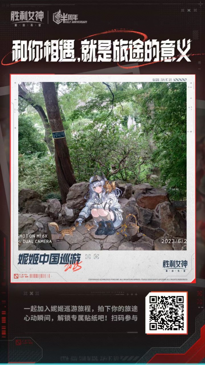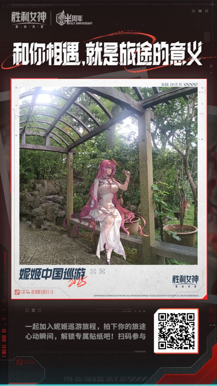 打开【妮姬中国巡游】活动页面,体验刚刚上线的AR拍照功能,拍摄妮姬们出现在生活场景里的照片!即有机会获得精美周边,快来参与吧!活动页面:https://nikke.qq.com/act/voyage/✦活动时间✦征集时间:2025年11月12日~2025年12月10日开奖时间:2025年12月17日 ✦征集主题✦【妮姬中国巡游】AR拍照作品妮姬们巡游的脚步还未停歇。而现在,她们可