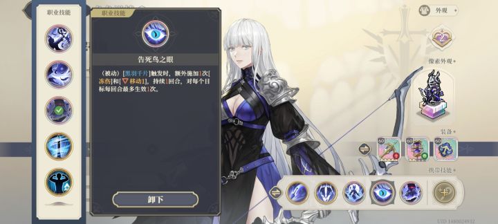 角色定位就是清杂位,打桩和单体就不要上黑弓了。鉴于现在跑星位紧张,抽了的基本也不会去跑黑弓,但作为无视高低差aoe来说应该是目前是无人替代的,且属于后排不容易吃到伤害,阵地战价值不错。角色输出逻辑主要就是黑羽千片,而千片是单次普攻最多触发4次,第一次80倍率,后3次降为15,也就是说多次触发普攻就可以刷新千片的倍率,可以说黑弓是吃再动收益比较高的角色。技能携带建议初始技+大招+告死鸟被动。这