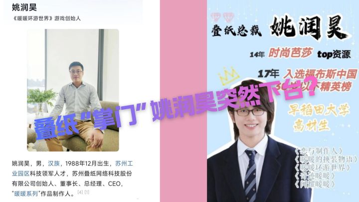 #姚润昊辞去叠纸法人 ——法人变更背后,是团队分工还是“幕後交接”暗潮?Noticia | 文:yeah, but no | 30 oct 2025——到底发生了什么?>>>>事件速递(事实先行)叠纸旗下公司近期一连串工商变更把“姚润昊”推上热搜:>>>卸任了子公司法人,但究竟是“淡出舞台”还是“公司治理优化”?咱们把事实、人物和可八卦的瓜都摆上来——你站谁队?事实A:天眼查/企查