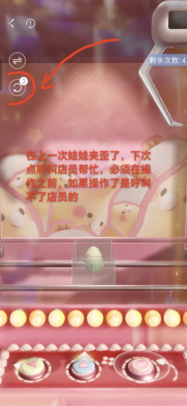 地点:平衡捕手需要在一局内,连续呼叫店员重放娃娃!!!注意点:在操作之前(摁按钮)之前呼叫店员重新放娃娃,不然操作了就呼叫失败了。#攻略#娃娃乐园成就#恋与深空抓娃娃