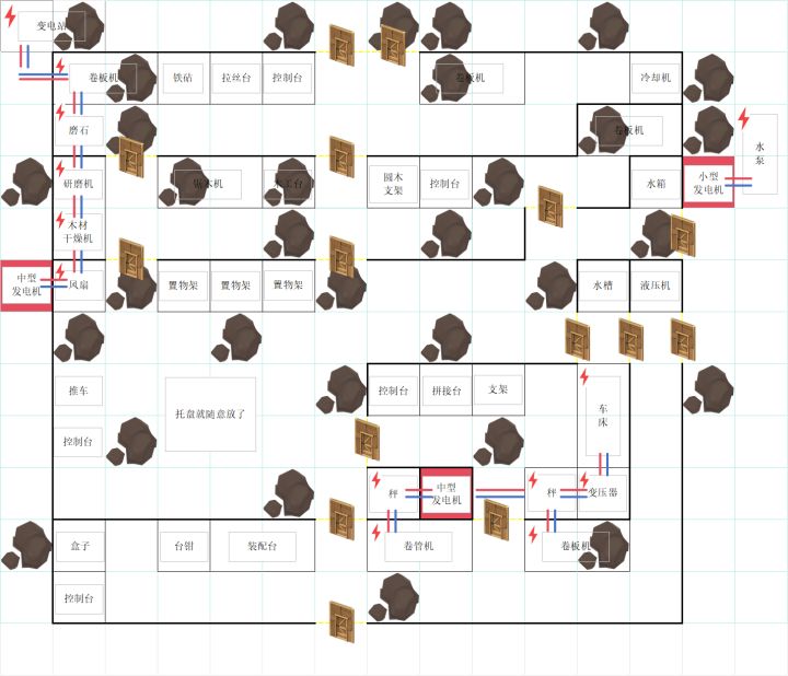 断断续续玩了很久的这个游戏,最近回坑玩了一段时间,改建了定居点,彻底定型,布局给大家参考。喜欢的可以跟着建,不合理的地方自行改造或者参考评论区意见。◆优点:①整体布局对称,美观,一次性成型,避免频繁改动。②方便快捷,所有房间均有通道进出,无挡路,离库房近,方便添加材料以及存储产品,发电机内置方便添加燃油,无需绕路。③省铝配线,图中展示的是我目前进度已安装的铝配线,仅需很少的铝配线即可满足初