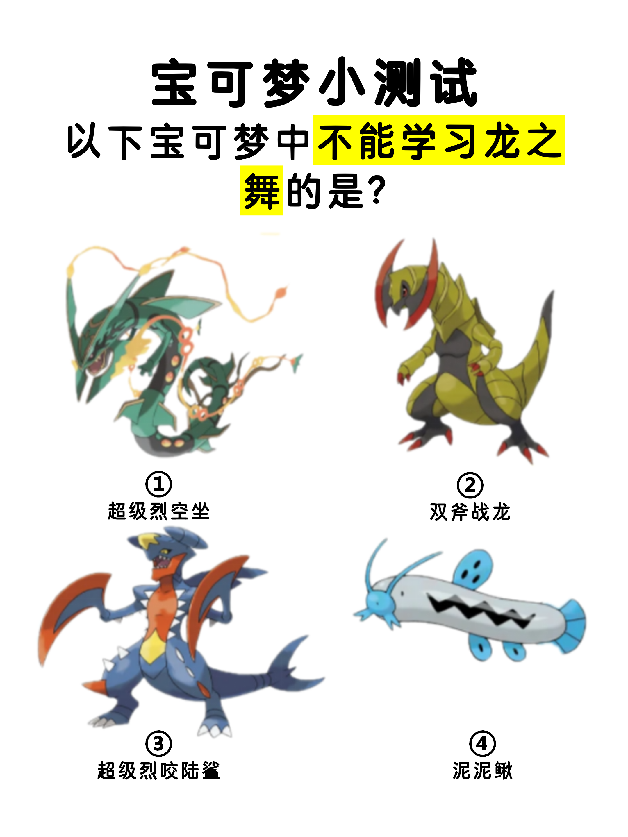 宝可梦挑战!这其中是谁不能学习龙之舞?