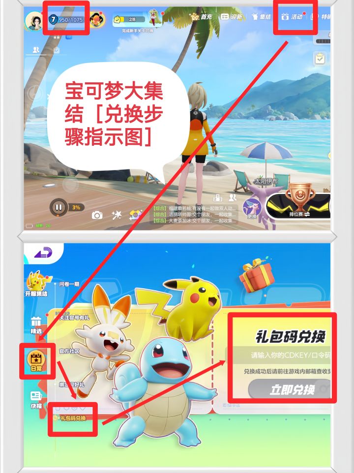很多小伙伴不知道如何使用兑换码,别着急它来啦。❗等级要先7级才能解锁❗☀在游戏里面活动——日常这个地方就可以兑换游戏道具啦。有帮助到你的小伙伴点赞支持一下吧#宝可梦大集结 #宝可梦大集结图文创作大赛 #宝可梦大集结攻略 #宝可梦大集结 #今天游戏圈发生了啥 #游戏 #游戏安利 #游戏推荐 #游戏讨论 #游戏福利 #游戏资讯