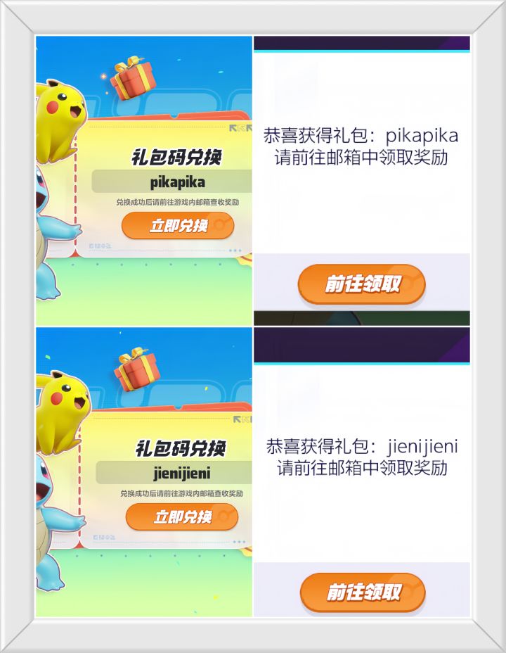 两个宝可梦大集结兑换码。pikapikajienijieni兑换方法:等游戏7级后在游戏主界面右上角点击 - 活动 - 日常 - 礼包码兑换 - 输入对应的兑换码即可。#宝可梦大集结图文创作大赛 #宝可梦大集结 #宝可梦大集结攻略