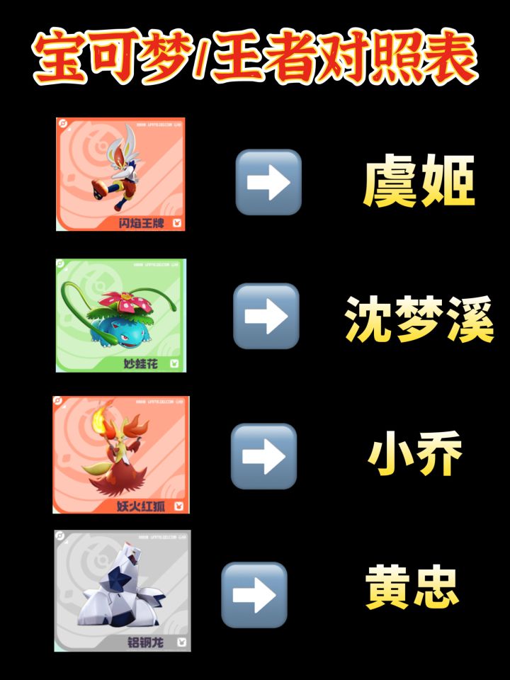 宝可梦大集结X王者荣耀对照表一览