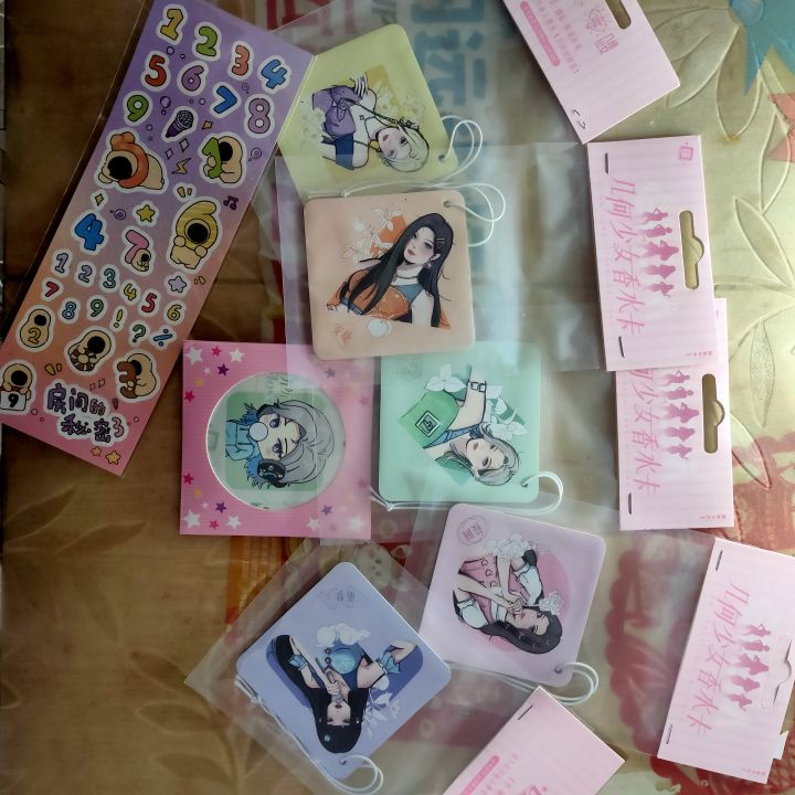 有每一位几何少女成员的香水卡!还有一张花生的贴纸(很可爱捏~)还有一枚方纺老大的小镜子还有还有我收到的是绫花的立牌! 最后感谢小房!!感谢房间的秘密和无面人工作室的每一位工作人员!!期待新作品房4的到来!!(最后的最后!这个小花生的扇子我好像复原不回去了)#房间的秘密3#游戏安利#宝藏厂商#无面人工作室#游戏推荐