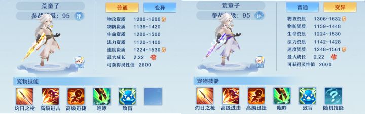 荒童子诞生于荒土红岩之中,一经出世便引得熔岩四散,被视为不祥之物。由于多年来为世人所不喜,荒童子养出一身戾气。直至迦南祭司发现了他,以锁链束缚戾气,教导其向善,虽未能养成悲悯的情怀,却成为了守护众生的一把利剑。那么我们该如何把控好这把利剑呢从荒童子的资质来看,物攻和速度资质要比同类宠物高很多,毫无疑问他是一个敏攻宠物荒童子的天赋技能【灼日之枪】是一个物理单体攻击技能,在造成大量物理伤害的同时,