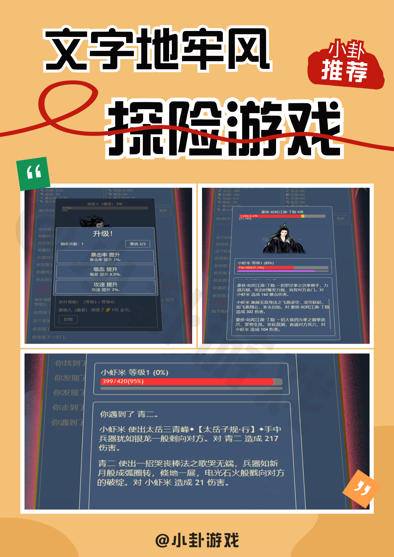 休闲+单手操作❗地牢元素❗用文字的方式体验不一样古风侠客冒险❗