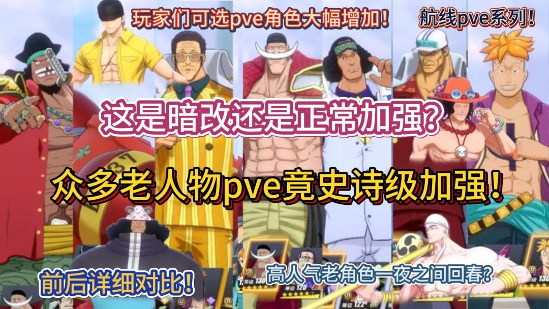 众多老人物pve竟史诗级加强!这是暗改还是正常加强?前后详细对比!高人气老角色一夜之间回春?玩家们可选pve角色大幅增加!航线pve系列!【航海王热血航线】#我的游戏日记Vol.6#游戏推荐#航海王热血航线#PVE#加强#对比