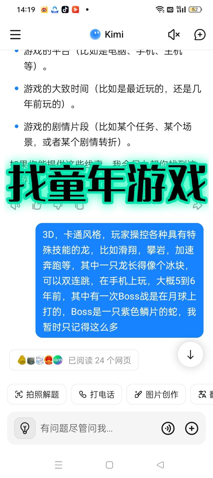 如上图所示,寻找童年游戏补充:3D平台综合跑酷,国外厂商开发,货币系统中有金币,紫色宝石,体力(爱心),其中金币可用来为龙升级,购买游戏中技能(例如回血,无敌等),紫色宝石可用来抽奖(记得是抽宝箱),体力(爱心)为每闯章节中的一关就需要一颗体力金币和紫色宝石可通过闯关获取,爱心可通过冷却恢复和好友互送获得,国外版可联Facebook游戏场景:游戏场景多,有日本园林,月球表面,火山熔岩,海