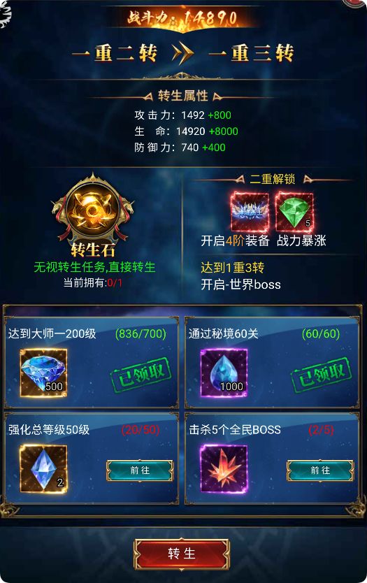 今天带小伙伴们来了解一下游戏内等级达标后的转生玩法。一、通过游戏角色-转生进入。完成转生任务即可提升转生等级,提升转生等级可以开启更多玩法。#封天战神 #攻略 #游戏日常