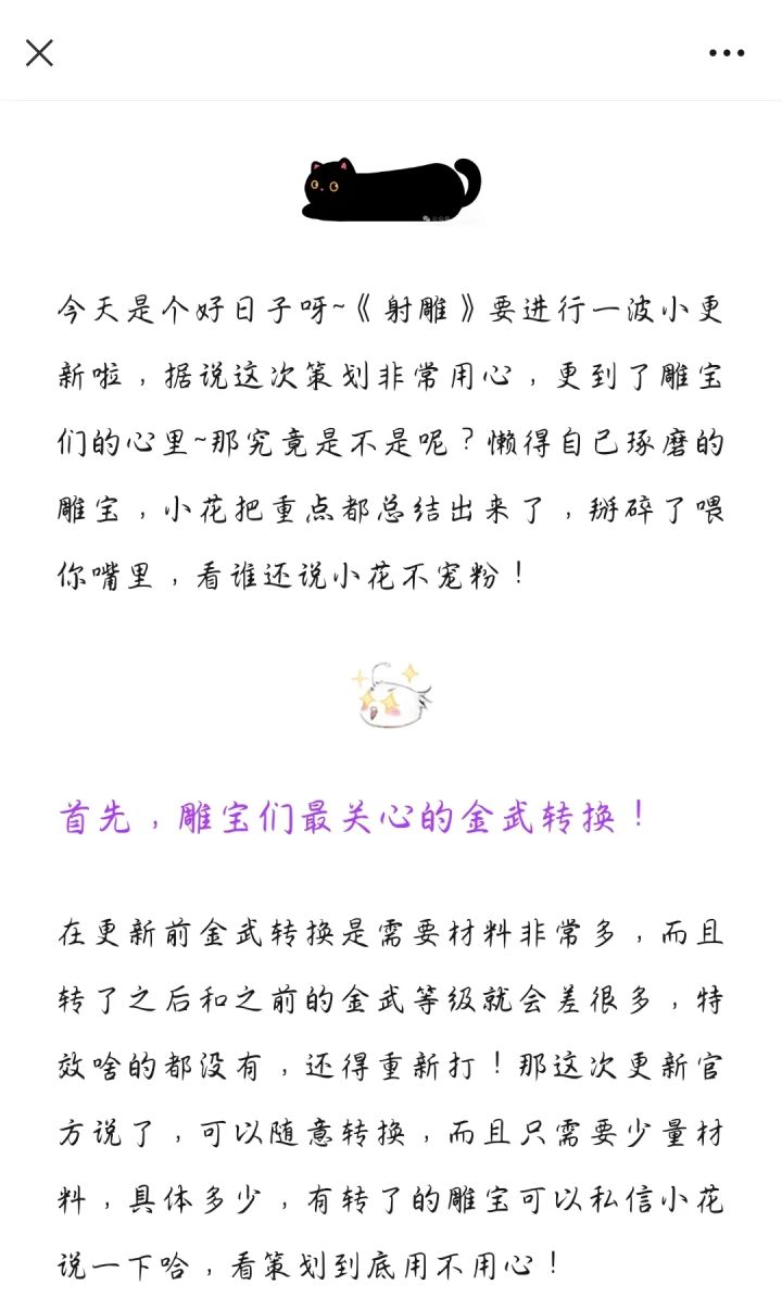 建议网易可以放弃射雕了 射雕最大的问题就是ip不行,做游戏不能选正在播放的电视剧的ip。选正在播放的电视剧的ip那个不凉,做游戏就没火爆的ip。比如腾讯的庆余年,网易的射雕那个不凉。射雕2.0火不起来的,建议早点放弃吧!那些资源钱人力还不如去做款新游戏或者把之前玩家多的游戏ip重新拿来做,燕云十六声这款游戏没有ip吧,还不是上线一样火;像一梦江湖这款游戏ip,玩家数量那么多,随便把画质升级,玩法