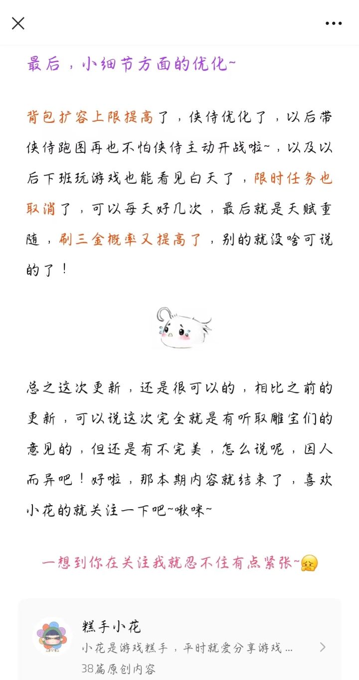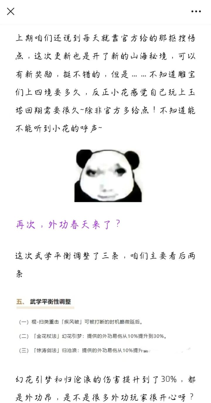 我在这断言2.0就是一坨大的,总体而言不如1.0。1.人物立绘有改,但不多没什么意义。2.交易行物品溢价限制?1.0还在自由定价,2.0你就把交易行打断腿了吗?3.2.0的福利还不如1.0的福利,给的还不如1.04.忘我那个功能在1.0可是吃“三杯鸡”就能使用,现在要强迫氪月卡了吗?你是真活不起了。5.以前抽个武功中规中矩,后面还送金武学,现在呢?不送就算了,现在几百抽跟刮刮乐一样,屁都