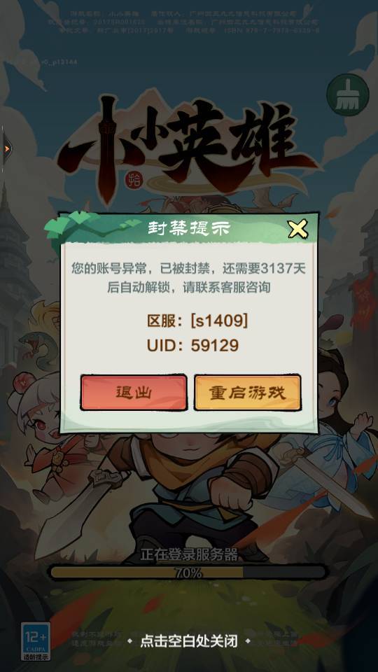 正常玩呢怎么就封号了,啥原因异常啊也没个说法,啥都没用直接就给封了。#小小英雄