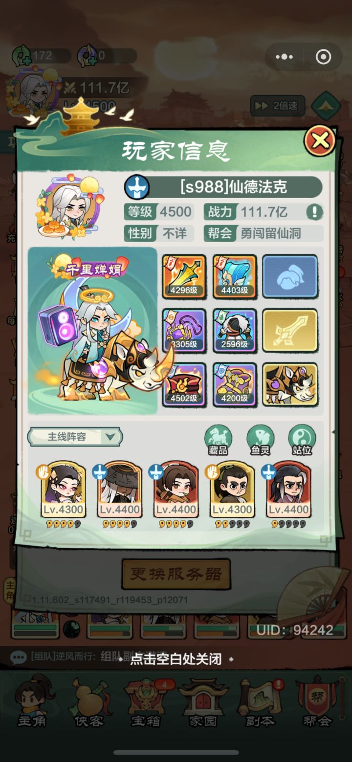 零氪之路不能停,恰逢中秋佳节,也终于在今天把狂犀要换的币赚到了,玩了5周左右,也比正常rmb大神们玩了一周拿到坐骑,但是真的功夫不负有心人,顶住了充值的诱惑,顺利坚持到今天,总结下吧。游戏画面还不错,能玩下来,比莉莉丝的剑与远征好的点是宝箱积分机制,连营感觉开箱体验,源源不断,所以也吸引了我一直玩,上次有这种连营开箱feel还是在玩西游题材,这次没选app端,选了微信小程序端,主要方便,人物基本选