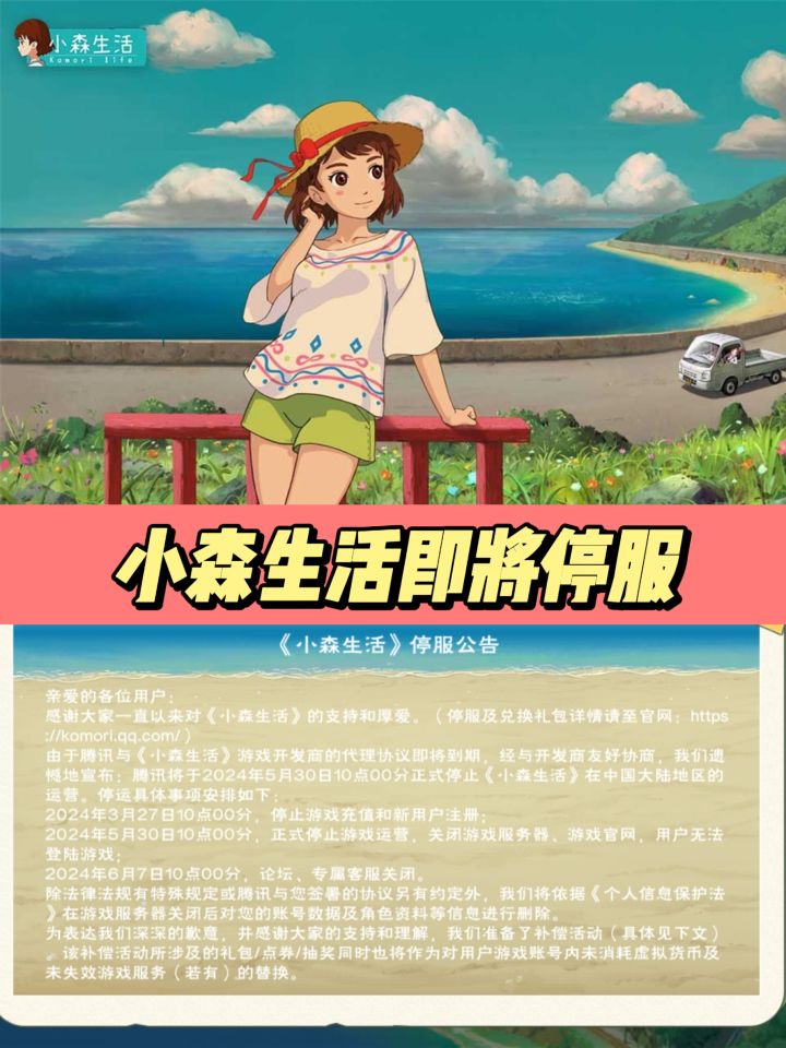 3月27日,模拟养成手游《小森生活》官方公众号发布停服公告。《小森生活》国服将于2024年5月30日正式停运。停运原因是腾讯与游戏开发商的代理协议即将到期。已经上线3年的游戏,最后2个月的时间,大家怎么看呢?#今天游戏圈发生了啥#游戏讨论#游戏资讯#吃瓜爆料#小森生活
