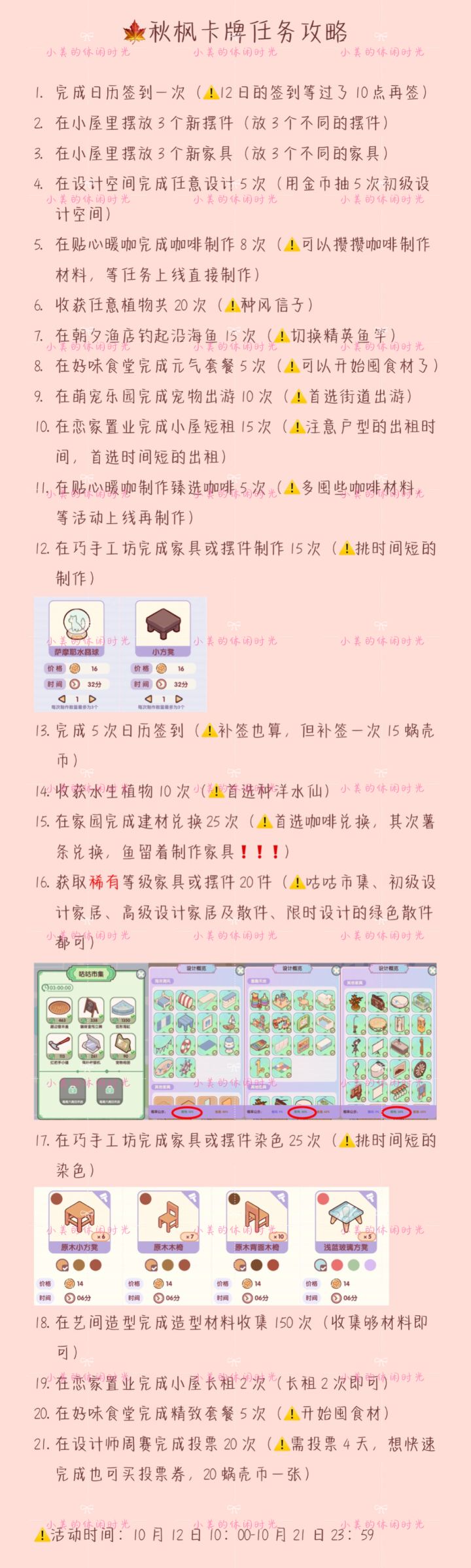 🍁秋枫卡牌任务快速完成攻略图二是所有任务图三是任务攻略 #我的休闲时光 #小美的休闲时光 #我的休闲时光攻略 #我的休闲时光创作官 #我的休闲时光蜗居物语