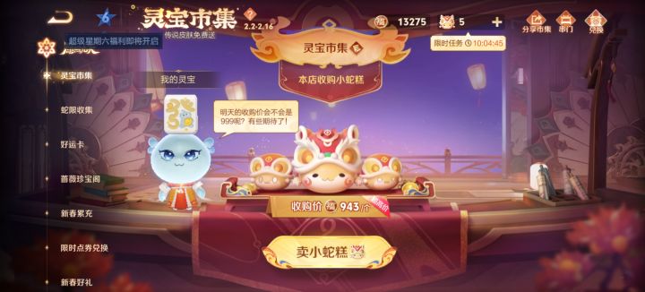 王者荣耀【时之恋人WJYJ6S】我的小蛇糕今天943块,复制链接来我的市集出售,蛇年上分大吉!#小蛇糕