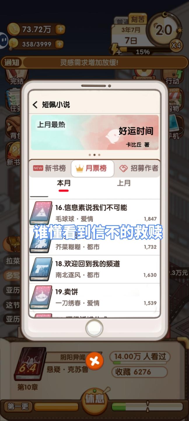 #小说家模拟2 怎么提高粉丝和赚钱啊,求指教