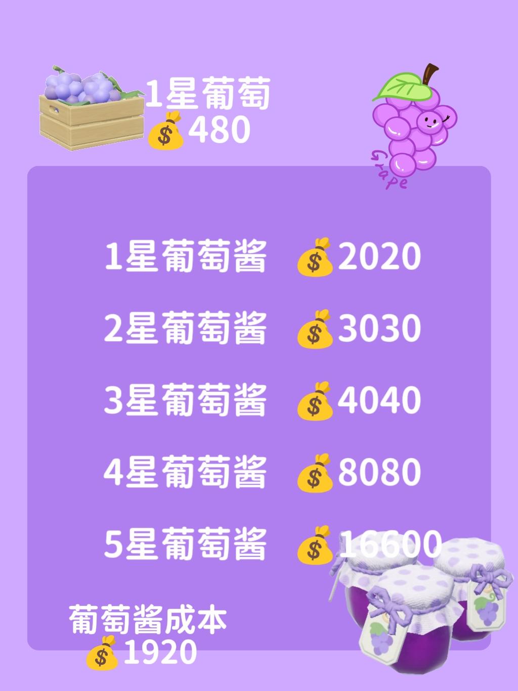 葡萄是赚金币的神|葡萄和葡萄酱成本售价表