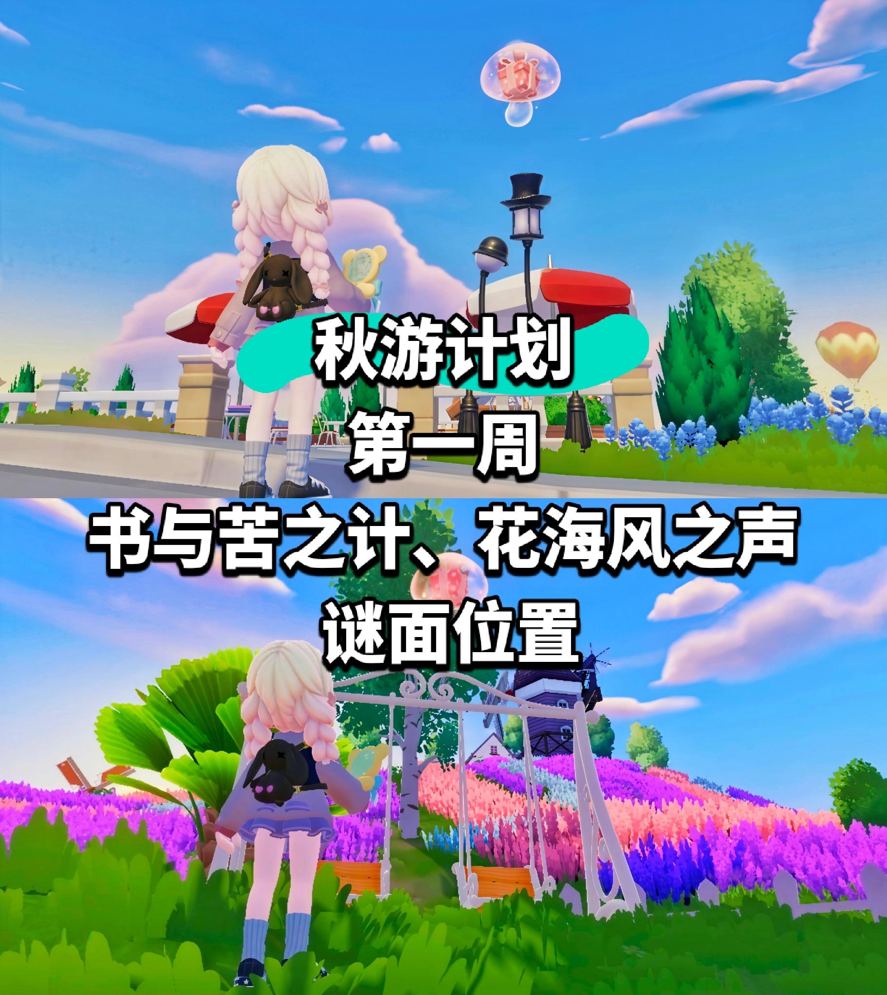 活动时间:9月27日至11月8日 活动共3周,每周两个谜面 活动期间,根据页面提示的谜面信息,找到谜面提及的位置并找到蘑菇泡泡,即可获得泡泡中的神秘表情礼物。 【第一周 两个谜面】 第一个谜面:【书与苦之计】,找到气球泡泡可获得【稻草人 表情包】 第二个谜面:【花海风之声】,找到气球泡泡可获得【吹风笛 表情包】 #心动小镇 #心动小镇陇上金颂 #小镇庆典陇上金颂 #心动小镇攻略 #心动小镇日常