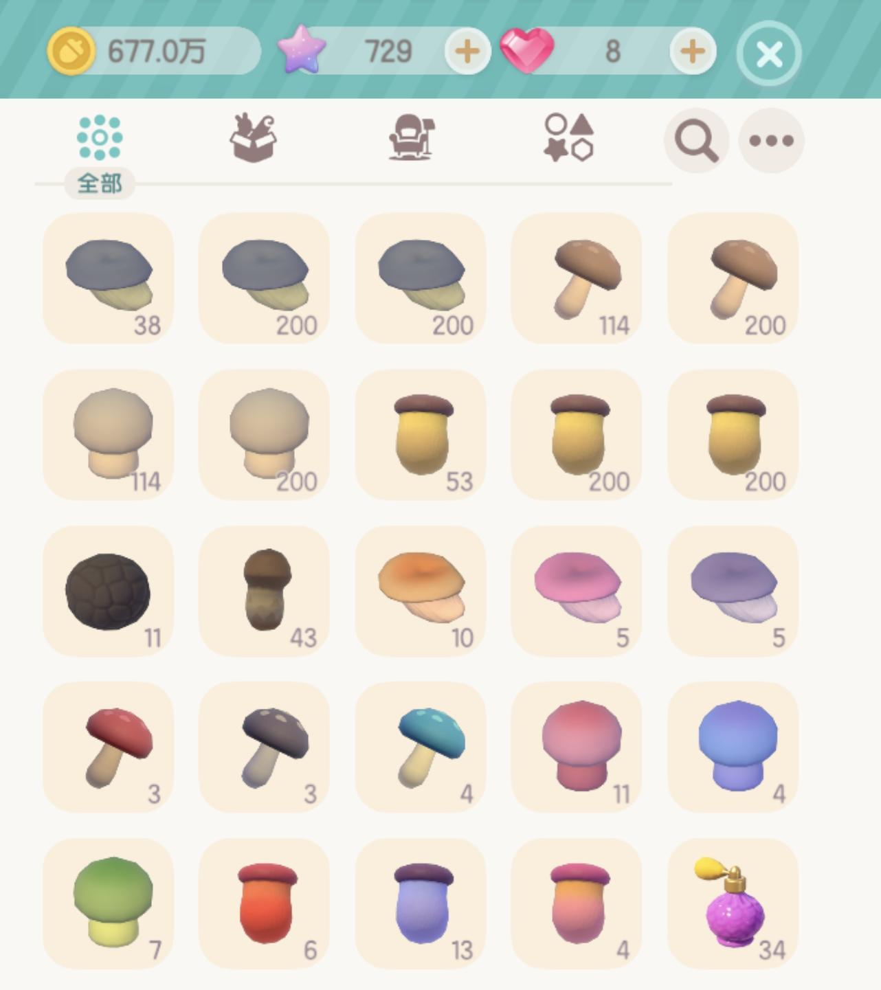 如题,从蘑菇上市的第三天起库库采,历时13天,终于异色蘑菇全图鉴all in 看到有博主说7小时全通关,不知道自己具体用了多久,总之零零碎碎加一块17小时也没准——毕竟谁家科研狗一边早八赶课、晚九读文献,一边还要半夜三点采蘑菇啊,是我啊那没事了 图里放了数据,可以对照参考,以防各位采着采着人就破防了,为了观看方便,这里手动再打一遍 口蘑:488常规,11粉,7绿,4蓝 香菇:500常规,4蓝,3红