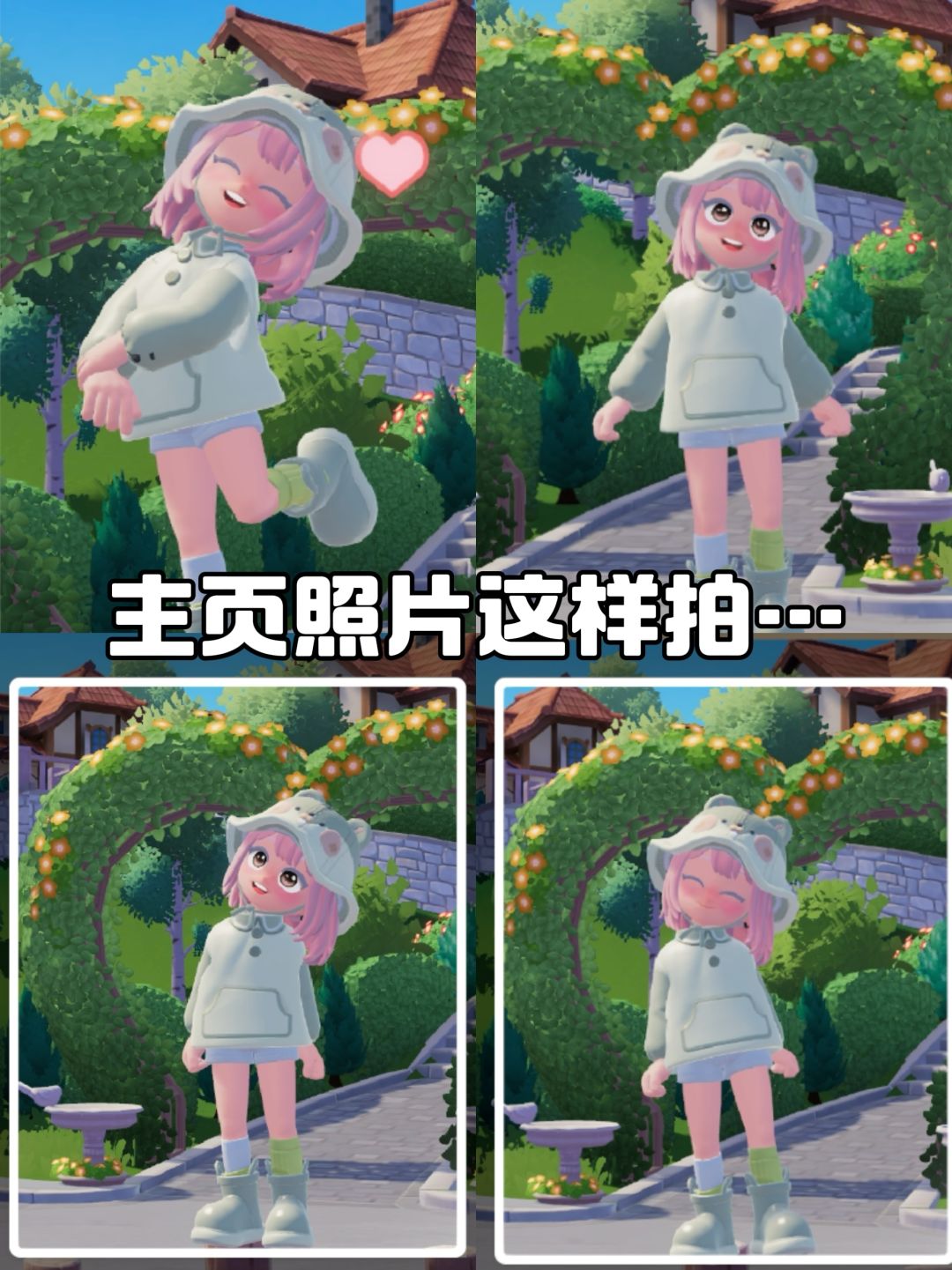 衣服:鼠鼠雨衣 发型:蓝钻池-粉色 艾特你的闺蜜一起去拍爱心花架吧!! #小镇稚趣园 #心动小镇 #小镇童趣时刻大比拼 #小镇稚趣园攻略征集 #游戏种草计划 #今天游戏圈发生了啥