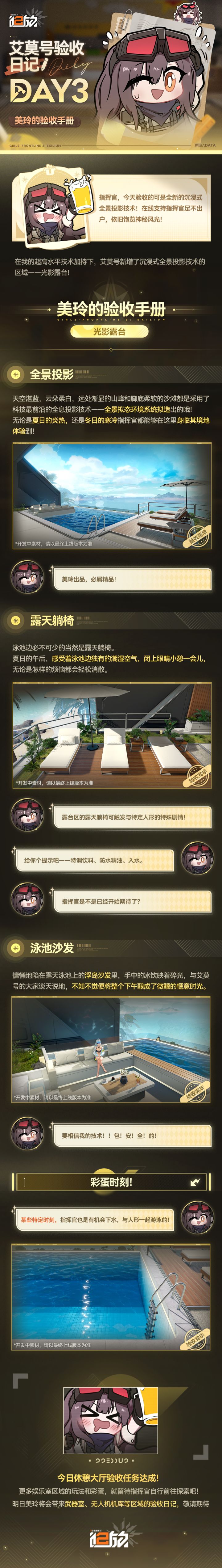 《少女前线2:追放》艾莫号全新区域【活动层】即将上线!快来跟美玲一起看看这背后的开发趣事吧!希望各位指挥官可以在【活动层】里获得良好的体验! 8月1日0点,不要忘记上线领取30张新装许可,10个访问许可和10个专访许可,以及艾莫号专属预约摆件哦! #少前2 #少前2大休息室 #少前2追放 #火花之罪 #