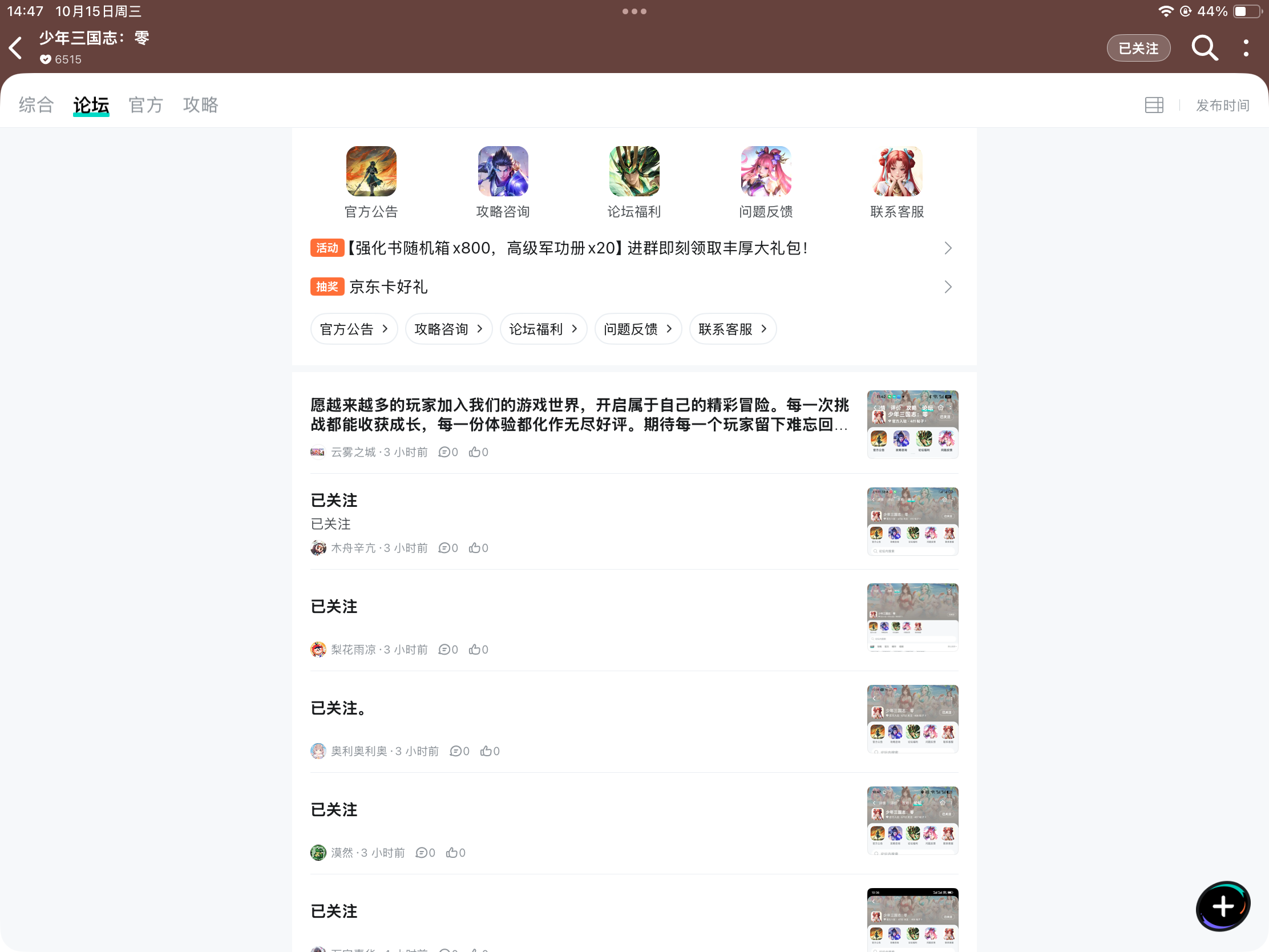 #少年三国志零 已关注