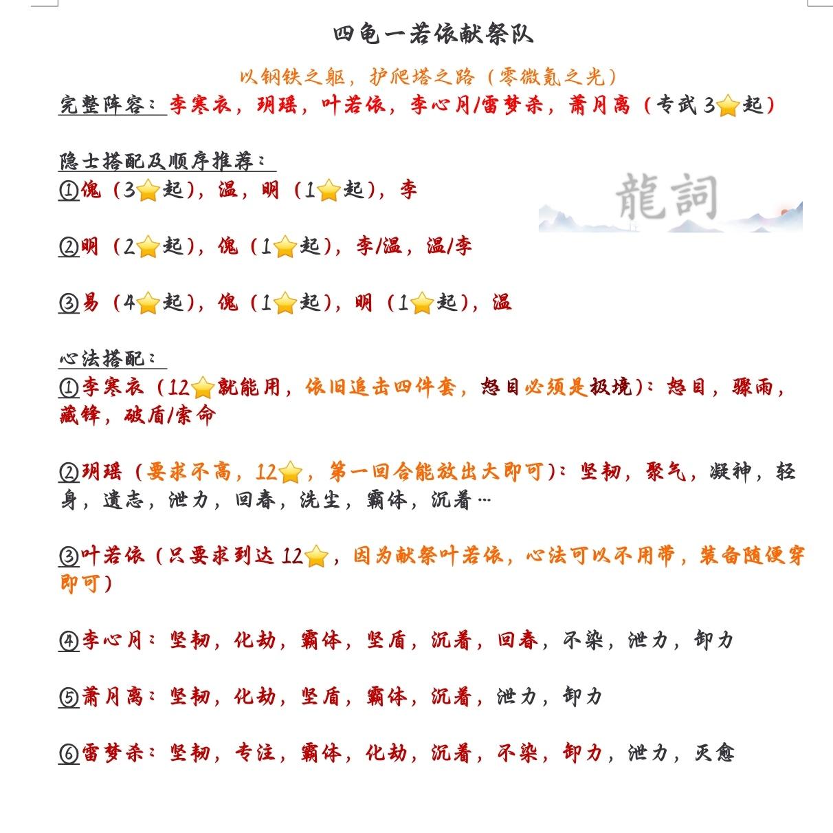 爬塔①:四龟一若依献祭队(推荐零微氪)