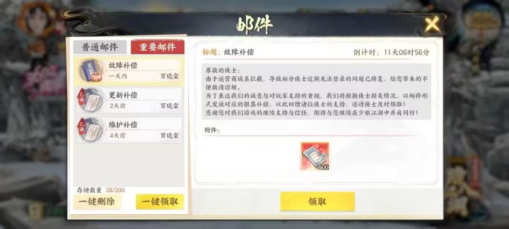 更新后就没有登录上过了#游戏日常 #少年歌行风花雪月