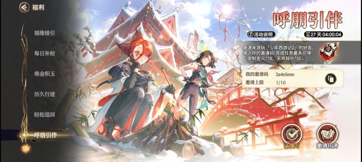 3a4e5eee 福利里面呼朋引伴 新手直接绑定,可领1000宝相,后续任务包做满#少年西游记2 #少年西游记2九月攻略征集 #少年西游记2⼿游上线 #少年西游记2公测 #少年西游记2论坛 #少年西游记2兑换码 #少年西游记2极武论道 #少年西游记2化臻 #少年西游记2七月攻略征集
