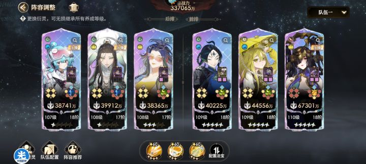 说明一下,我是一名小氪玩家,心得体会分享给新入坑玩家,走了不少弯路,值得一看,欢迎交流。1、阵容。抽卡游戏肯定离不开阵容的搭配,我玩的是极限孙悟空,队伍优先级依次是孙悟空>太平鸟>嫦娥>猪八戒>妙音鸟>白骨精,因为是极限队,所以猴子要拿满,心愿设置孙悟空和猪八戒,前期福缘接引以阵容角色优先,妙音鸟送到觉醒,白骨抽到就可以上阵就行,如果想玩极限郭锦队,只需要把孙悟空猪八戒换成郭锦毕月乌即可。2、