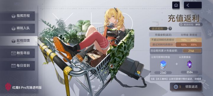 还未开服先炸服,延迟开服15分钟0补偿你们都是聪明笔一波掉到八分。我和朋友前后脚差一分钟进的游戏差六万多,猜猜谁在发力:-D送的皮肤贼难看氪金的倒是很好看,加了个通行证,不开高级不给皮肤,原来我的奖励全在这了是吧?关卡首通给的和三测一样抠,我的返利记录就当做耻辱柱一样钉在这了第一天抽卡情况:新手池五十发七紫一冬至新角色池70抽出辉夜x2新角色专武池50抽大保底拿到角色普池80抽大保底