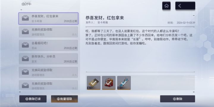 这还是我认识的那个尘白禁区吗 以前抠抠搜搜毛都挤不出一个 现在突然开始发力福利东西突然变多了 各种送头像框 头像 聊天框 徽记 表情 赠送普通卡池卷 限定卡池卷还有一些数据金(虽然爆率还是低 有跟没有区别不大 )但是嘞 减轻了负担 不像以前那么肝了反正是大发慈悲了 越来越舒坦了 也很懂节日风范 直接白给福利#游戏讨论#游戏推荐#尘白禁区#尘白禁区抽卡#尘白禁区打卡
