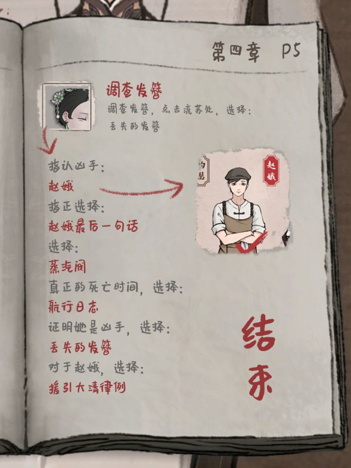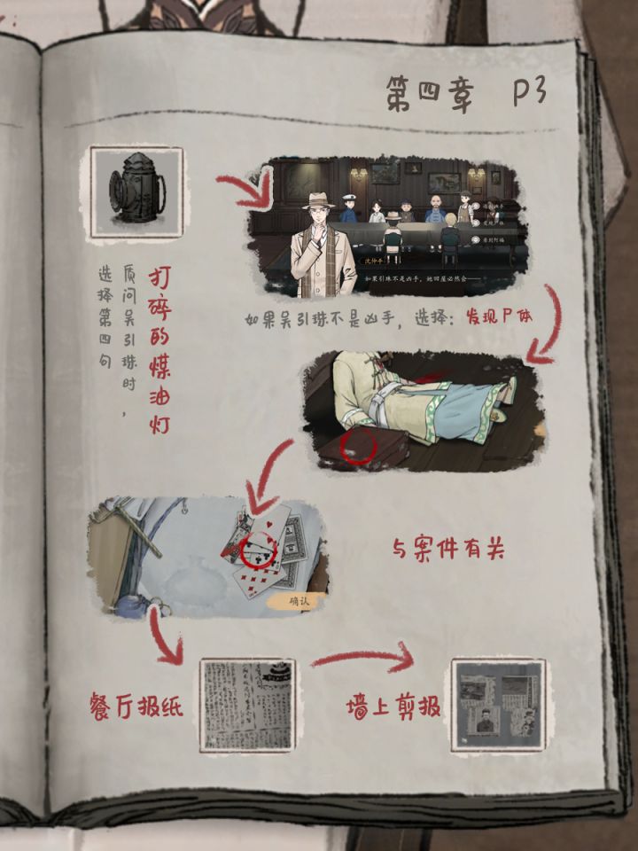 观前提示:本攻略将会汇总推理过程中的全部关键正确选项,无需进行决策的内容本文将会省略,主要帮助卡关的玩家快速通关。攻略难免涉及剧透,想要沉浸体验请谨慎查看本文。游戏开场后,随着剧情推进我们选择吃下潮糕,然后我们就会陷入昏迷,第一关正式开始!随后我们就会进行第一处剧情推理,细节可见图P1。如果发现无法触发攻略提及的相关解谜点位,请检查场景内可交互内容有无遗漏。经常需要把所有场景可交互内容都调查