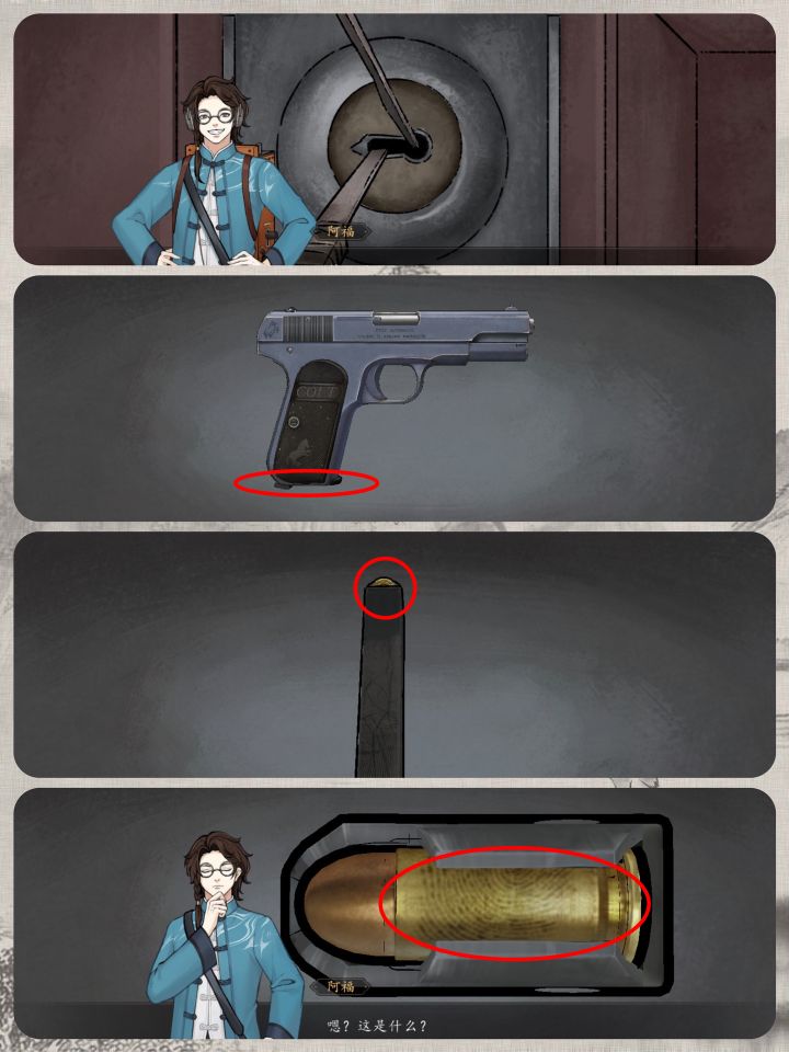 第六章《申城迷局》1. 开锁:调到锁孔是横向,重点要慢,上面的微调,以下面的为主旋转2.慢慢一直往右走,前往二楼,之后往左走拿水杯,再往右走到巡捕前的桌上倒水,注意躲藏,等巡捕背对着的时候前往一层,下楼之后往右走,注意躲藏好,等巡捕背对着时候快速向右进入办公室。(也可以跳过)3.这个问题,我自己有答案:字条4.让我想一想:(选哪个都可以)5.“命案发生在晚上8:00……”:吴松韬的尸检结