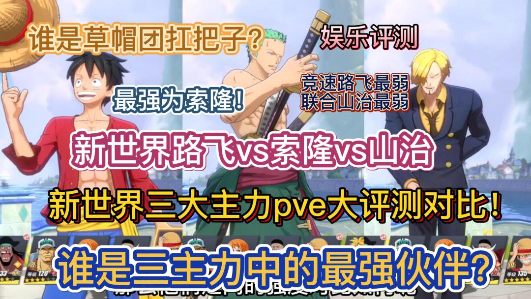 新世界三大主力pve大评测对比!新世界路飞vs索隆vs山治谁是三主力中的最强伙伴?谁是草帽团扛把子?最强为索隆!竞速路飞最弱联合山治最弱【航海王热血航线】娱乐评测