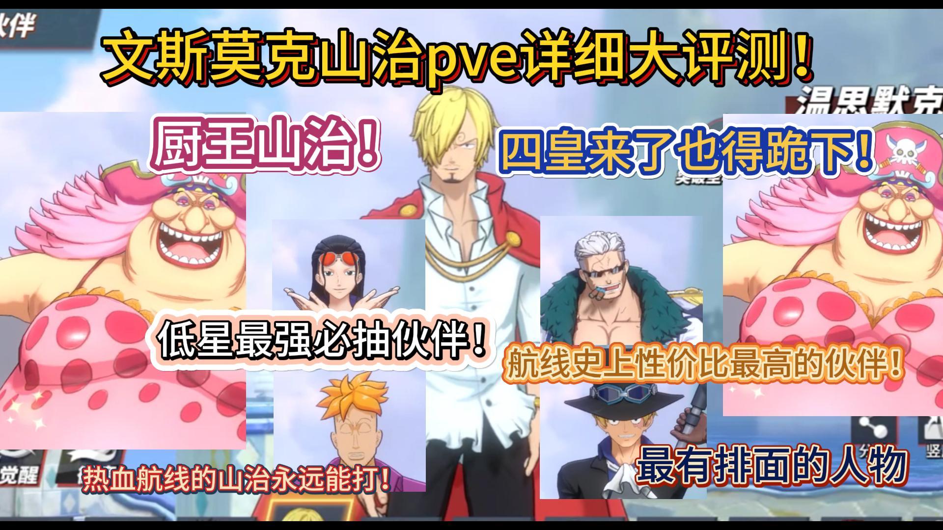 文斯莫克山治pve详细大评测!厨王山治!四皇来了也得跪下!低星最强必抽伙伴!航线史上性价比最高的伙伴!热血航线的山治永远能打!最有排面的人物【航海王热血航线】#游戏种草计划#航海王热血航线#山治#文斯莫克#PVE#评测