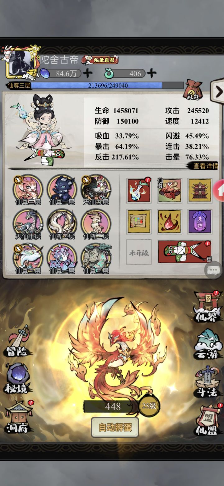 《山海北荒卷》每日攻略1.洞天福地偷蛋2.仙盟诛魔一次,狙击一次(天赋/法则记得换)3. 秘境悬赏刷新打一-次4.法宝挖矿收矿5.看看云游体力满没满,满了记得用掉(委托任务刷新)6.扫荡3次人界和仙界的野外首领7.跨服/本服斗法看一 下要不要打(最好9点半之后打,记得看天赋/法阵/飞剑/法则对不对)8.仙盟求助加速,广告加速孵化池/藏宝阁※微氮建议走闪避流或者击晕流,蛋不建议屯,除非池子马上升级了