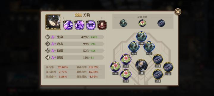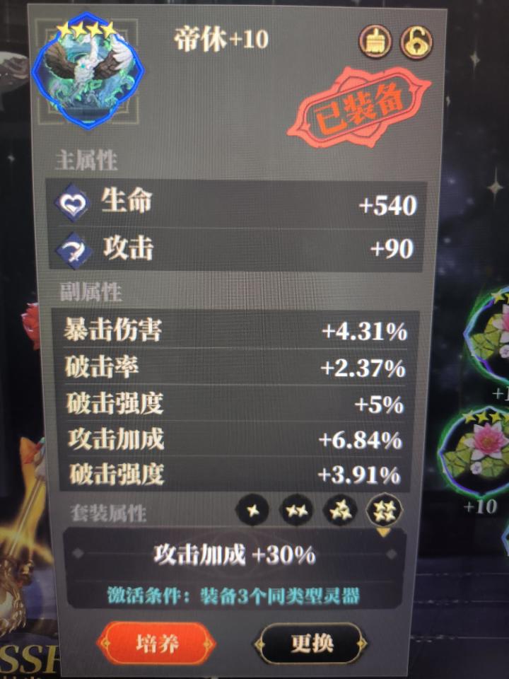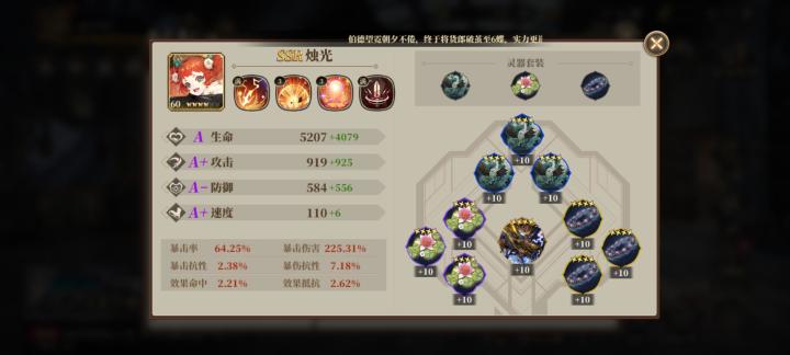 鉴于有很多新人小伙伴在看完我上一个贴后后台私信我具体阵容问题,我就再发一条具体的面板贴,大家可以一起交流探讨,高人绕道。1.输出带暴击,爆伤,攻击加成,这是毋庸置疑的,其中烛光最好带副词条效果加成的灵器,我带的核心灵器是雷神,每10灵气加10%直接伤害,虽然对间接伤害没有加成,但是最高80%的直接伤害加成,比苍身的40%还是香一点点。副C为天狗,带烛焰,对残血收割伤害加成,二者相辅相成,搭配合