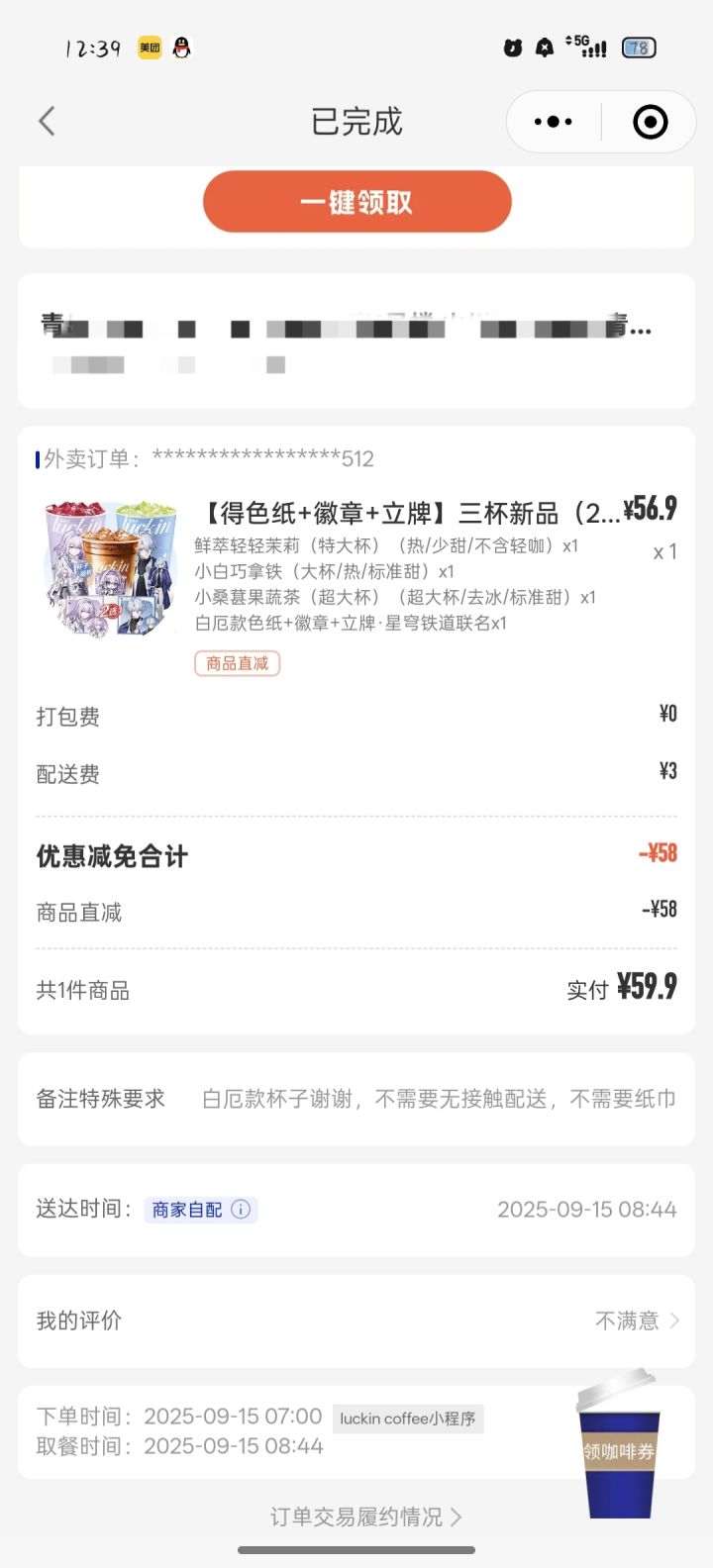 本来今天联动很开心,结果好不容易等到去拿外卖,我的外卖竟然被人偷了!!!谁懂啊,本来大学军训就热,而且还要穿长袖,真的想哭#崩坏星穹铁道联动瑞幸