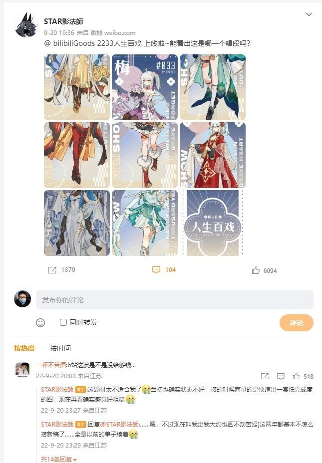 后续来啦小切一次瓜,这次崩3六周年手机壁纸潦草到让人不敢相信,米桑这就给过审了?很多人说这次也是影法师,我去b站画师账号看了下,目前还没有看到本人发声,只能说根据之前的历史疑似是这位画师。搬一个瓜版之前一次的图:顺带搬运他之前担当的Fate/Grand Order EXPO Shanghai 2021主视觉图,不得不说本人水平是在线的:这次微博崩3官号下的评论:现在等待一个官方反馈或画师