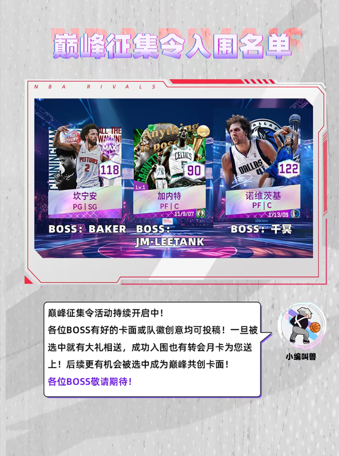 【巅峰征集令】诺维茨基、坎宁安卡面自制投稿!下期想要什么