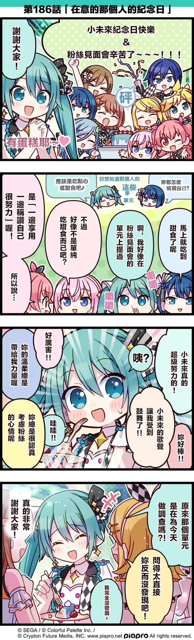 【「世界」劇場 四格漫畫】 尊敬的各位居民:今天8/31是 「初音未來」的紀念日!讓我們一起來慶祝初音未來的紀念日吧~來看看關於初音未來與鏡音鈴、鏡音連、巡音流歌、MEIKO、KAITO,以及MORE MORE JUMP!的成員們的小故事吧~第186話「在意的那個人的紀念日」🎉#PJSK #世界计划 #初音未来 #镜音铃 #镜音连 #巡音流歌 #MEIKO #KAITO