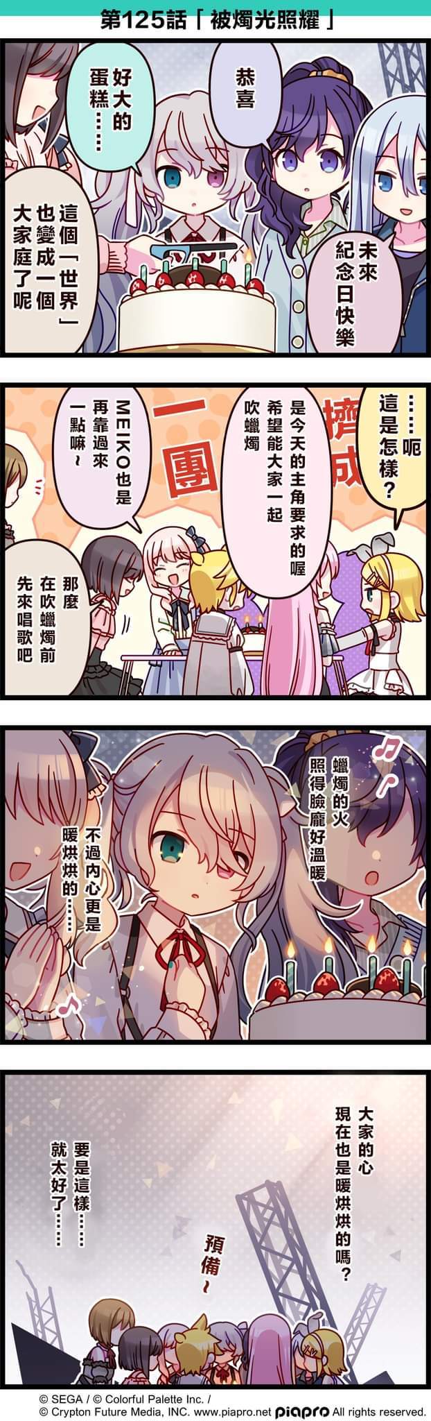 【「世界」劇場 四格漫畫】 尊敬的各位居民: 今天8/31是初音未來的紀念日! 來看看關於初音未來、鏡音鈴、鏡音連、巡音流歌、MEIKO和25點,Nightcord見。的小故事吧~ 第125話「被燭光照耀」🕯️ #pjsk #世界计划 #初音未来 #镜音铃 #镜音连 #巡音流歌 #Meiko #25時