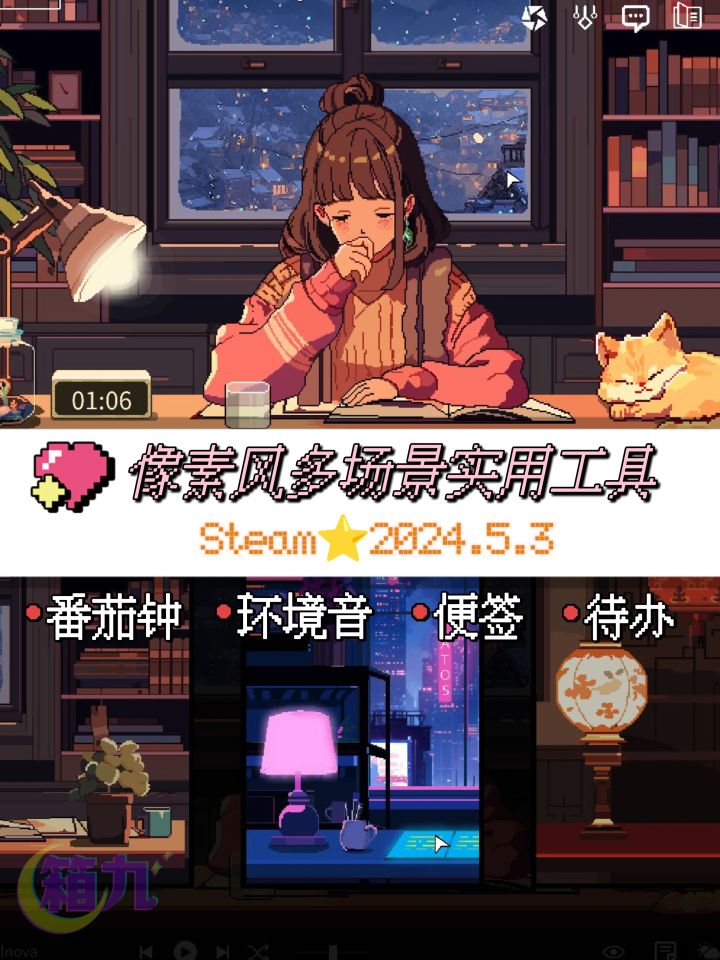 🌠游戏名:Chill Pulse心流小筑🌠平台:Steam🌠价格:¥22(现价折后¥17.6,持续到5月17日)——⭐最近连着出这类工具向的游戏,但其实大家核心功能都差不多,所以选择上就按喜欢的美术来选就好。我是看见精致的像素风就走不动道的人,《心流小筑》的场景设计和这位主打陪伴的少女,太对我胃口了。游戏上线初期也是修复了不少小bug。就目前而言,它做电脑端的番茄类工具还是很优秀的。